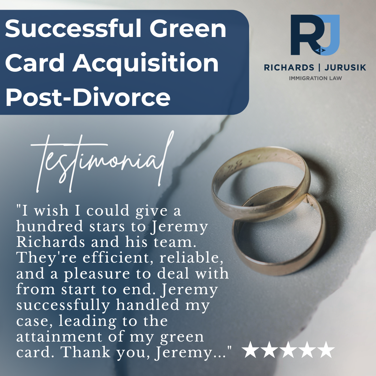 This experience is just one of the numerous examples showcasing our expertise in securing green card approvals for clients navigating divorce. Trust us to guide you successfully through your immigration journey.
