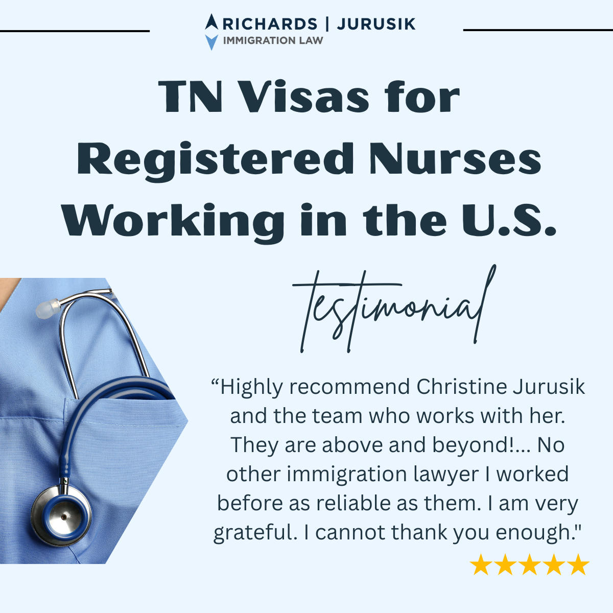 Don’t know where to start? Most offer letters fail to meet the minimum requirements for a TN Visa application. Many TN Visa applications are denied simply due to an improper TN Visa offer letter. The TN Visa lawyers at Richards and Jurusik Immigration Law have hundreds of 5-star client reviews and decades of experience helping TN Visa holders with all aspects of the TN Visa process. We always start with a case assessment and offer several levels of TN Visa legal services to fit your needs.